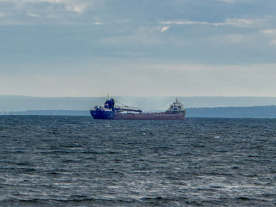 Watched her most of the day from different vantage points along the shore. Each time I checked, she'd swung to a new heading, rotating around her anchor like the hand of a clock as the wind shifted. Bow to the northeast this morning, swung west by midday, pointing somewhere else entirely by evening. Seven hundred feet of ship pivoting slowly and steadily on a single hook. She's sitting low in the water, loaded heavily. Iron ore pellets bound for the Lower Lakes, most likely. The self-unloaders never stop this time of year if they can help it, racing to get as many runs in as possible before the Soo Locks close in January.